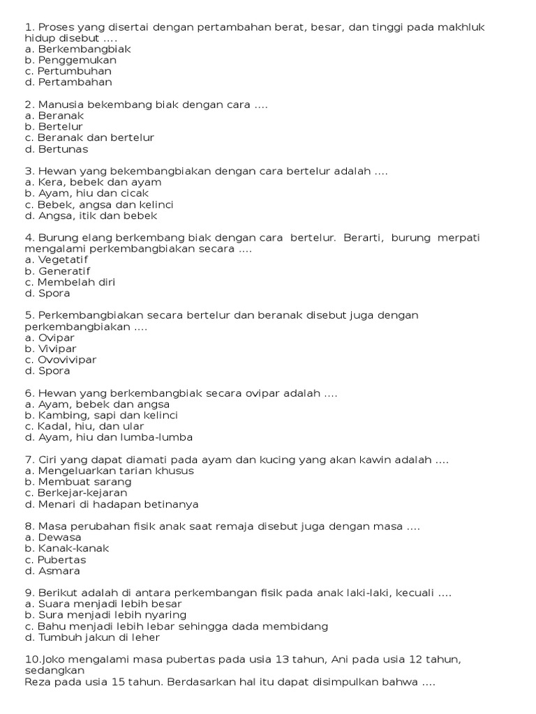 Soal2 from imgv2-1-f.scribdassets.com Check spelling or type a new query. Maybe you would like to learn more about one of these? We did not find results for: Hewan yang berkembang biak dengan cara bertelur dan beranak disebut.